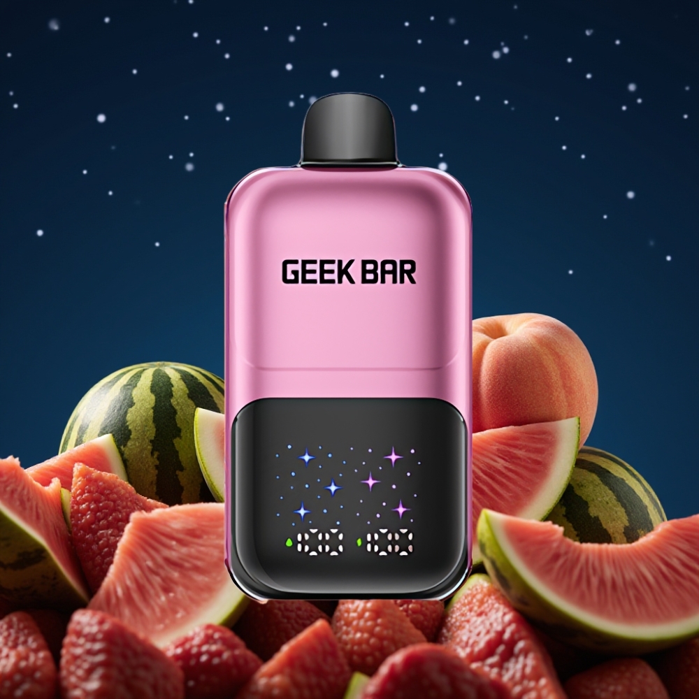 GEEK BAR 2GO 50000 Puffs Pantalla Grande Dual Tanque 20mL 5% Nic Sal Recargable Durazno & Sandía