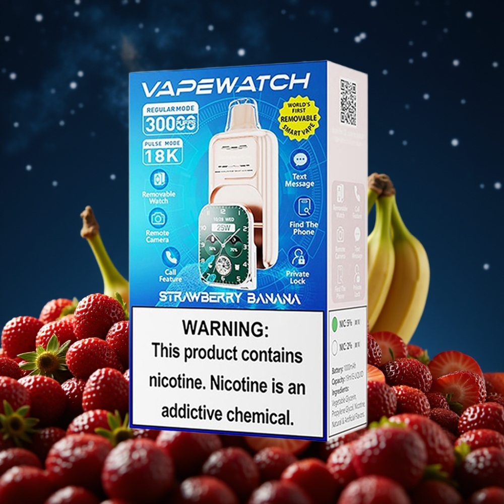 JNR VapeWatch 30000 Puffs 1000mAh 19mL 5% Fresa Plátano Dual Mesh Type-C